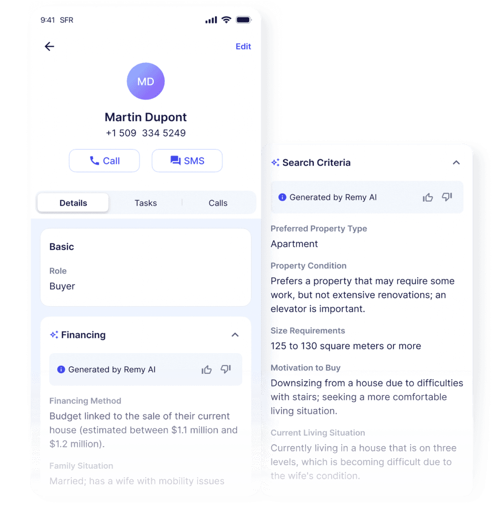 "RemyAI has been a huge time saver. Between showings and nonstop calls, being able to share precise transcripts and actionable tasks with my team instantly keeps everything running smoothly."