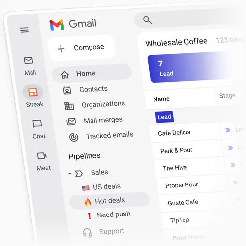 Streak lives in your inbox. The place where you do all your work. Itβs always there, so your team actually uses it.