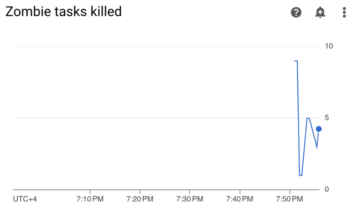 Acesse Monitoring e verifique se não apareceram novas tarefas zumbi depois que você atualizou os limites de recursos do worker: