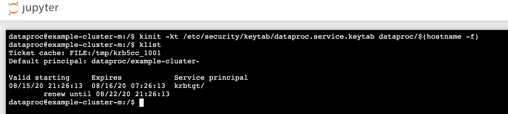 kinit -kt /etc/security/keytab/dataproc.service.keytab dataproc/$(hostname -f)