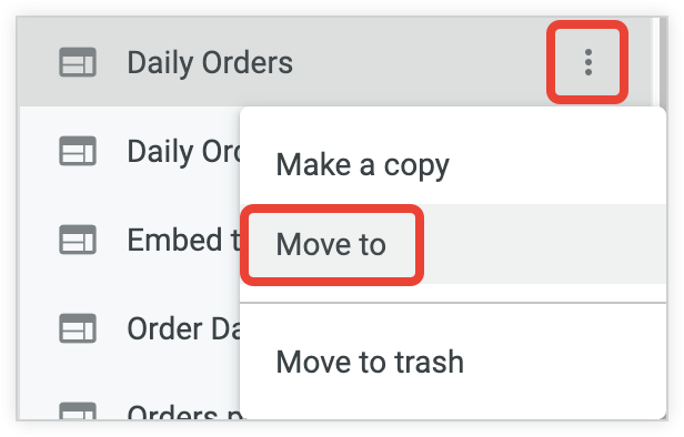 Ve a la carpeta que contiene el panel de control o el look que quieras copiar y, a continuación, haz clic en el menú de tres puntos situado junto al contenido y selecciona Mover a.