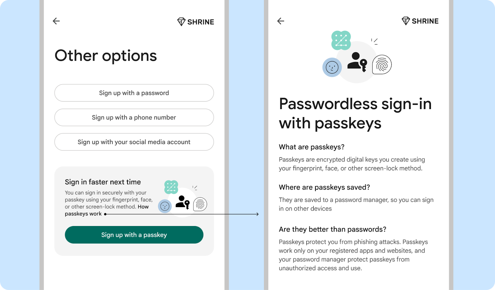 - Google에서 제공하는 패스키 아이콘을 사용하여 Android에서 일관된 로그인 환경을 만듭니다.