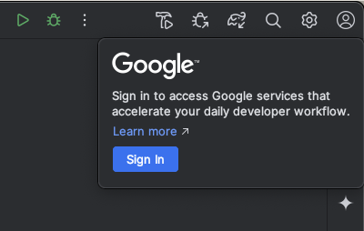 অ্যান্ড্রয়েড স্টুডিওতে একটি প্রজেক্ট খোলার পর, IDE-এর উপরের-ডান কোণে অবতারে ক্লিক করে এবং সাইন ইন- এ ক্লিক করে আপনার Google অ্যাকাউন্টে সাইন ইন করুন।