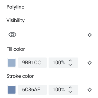 Çizgi genişliği: Poligonların ve çoklu çizgilerin ana hatlarının kalınlığı. Sonuçlar, yakınlaştırma düzeyine bağlı olarak değişiklik gösterebilir. Anahat istemiyorsanız kontur rengini dolgu rengiyle aynı olacak şekilde ayarlayın veya kontur genişliğini 0 olarak ayarlayın.