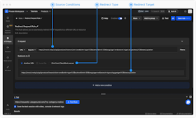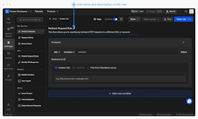 Define when the rule should trigger. Use filters like URL Contains, Equals, Regex, or Advanced Filters.