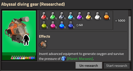 Maraxsis is 100% covered by deep ocean. There is no land on the entire planet meaning you'll have to invest in aquatic technologies such as submarines, hydro plants, and submerged pressure domes. In terms of progression, Maraxsis is unlocked at the same point as Aquilo. This means the mod can be seamlessly added to a finished Space Age save.