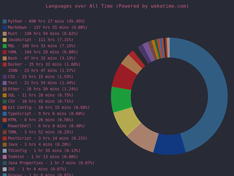 N.B. The below statistics only reflect time spent in VS Code since April 2024.