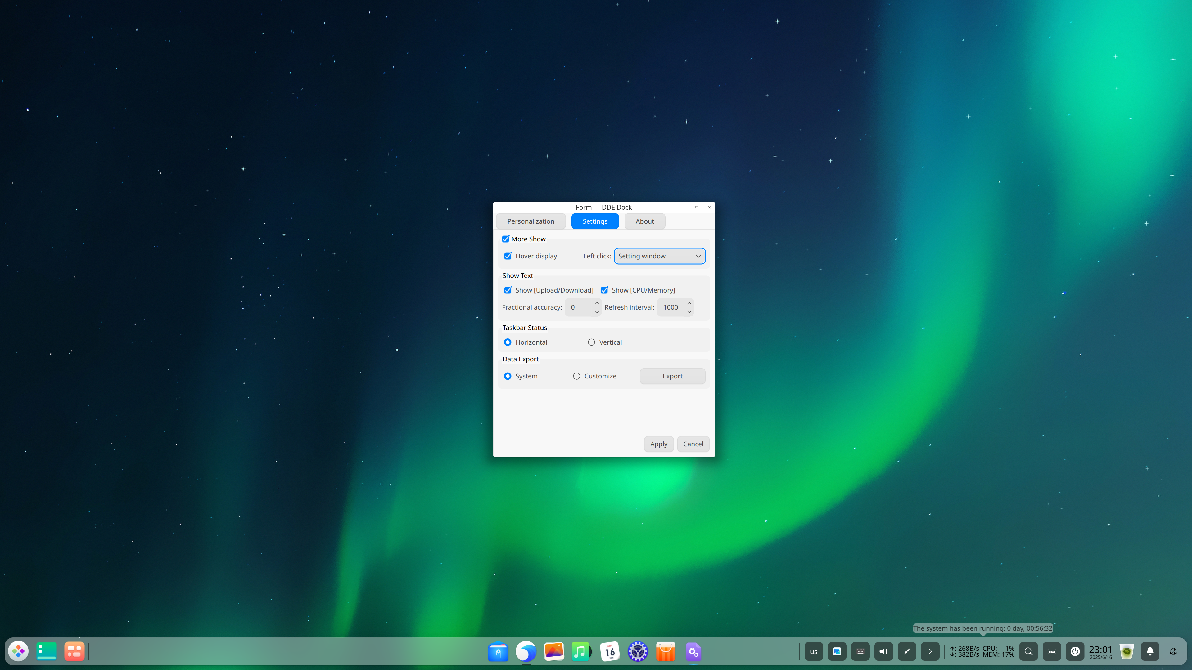 喜爱 DDE ,为 Deepin 爱好者、也是开发者之一。因习惯其它系统上有一个任务栏网速插件,但在 Deepin/UOS上没有相似的,故项目诞生。 本项目支持在 Deepin V20.9、等环境的 UOS 或其它任何 Linux 发行版。此项目为 lfxSpeed 项目的重写和功能延续。