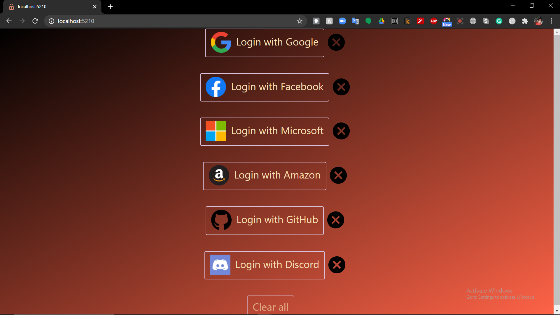 `)})Go to http://localhost:5210 and try logging in with Google. Don't know your password? Never mind. Click forgot password. Wait, what?? You don't know the answer to any of your security questions? How is that possible???