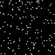 . On each turn, this program converts a random black square into a white square.
