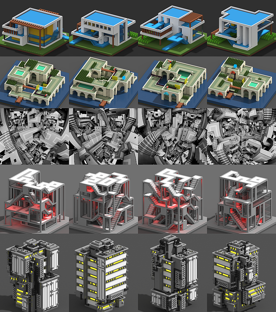 - Higher resolution screenshots and more seeds: ModernHouse, SeaVilla, Apartemazements, CarmaTower, Escheresque, PillarsOfEternity, Surface, Knots.