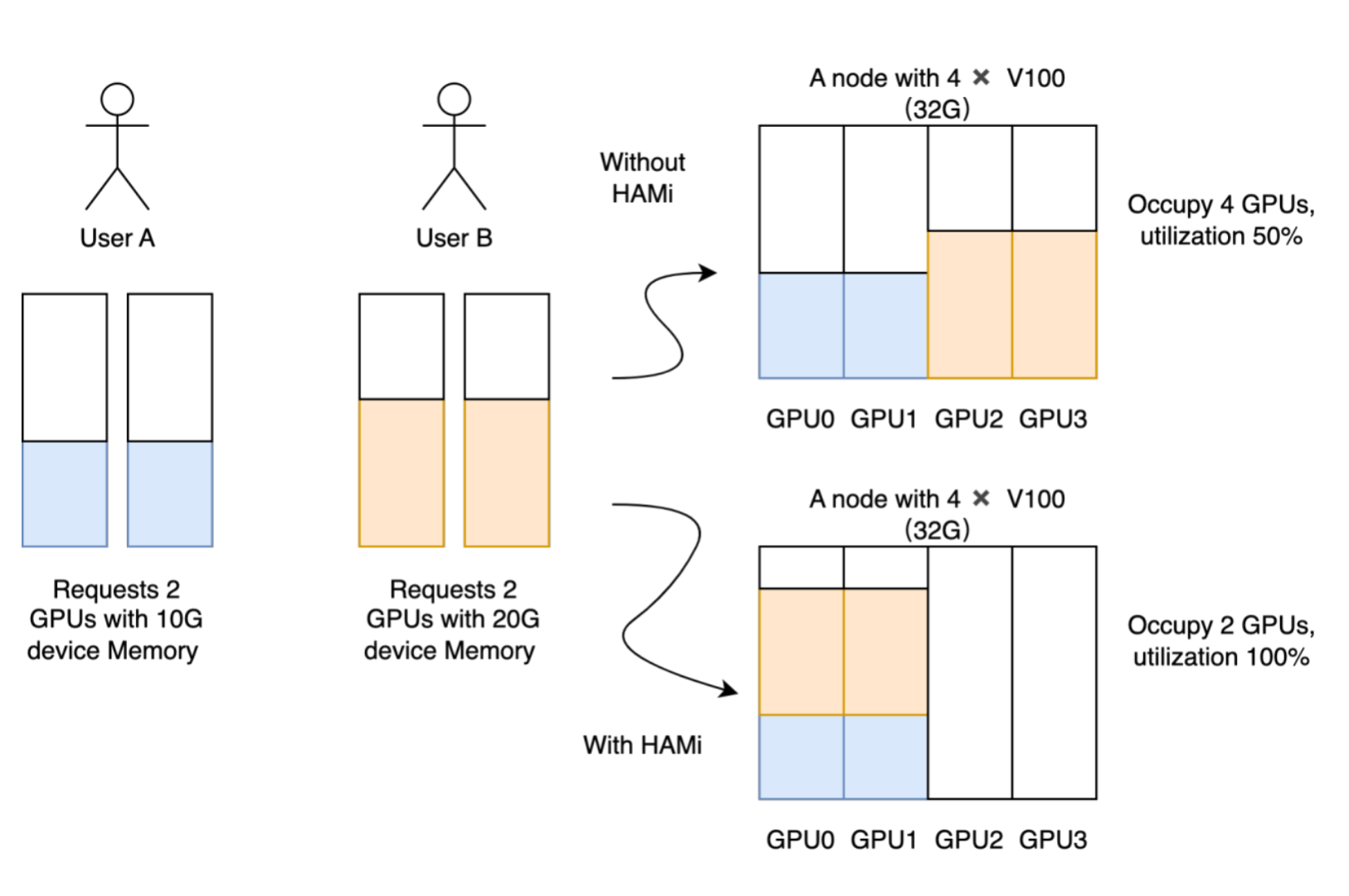 HAMi, formerly known as 'k8s-vGPU-scheduler', is a Heterogeneous device management middleware for Kubernetes. It can manage different types of heterogeneous devices (like GPU, NPU, etc.), share heterogeneous devices among pods, make better scheduling decisions based on topology of devices and scheduling policies.