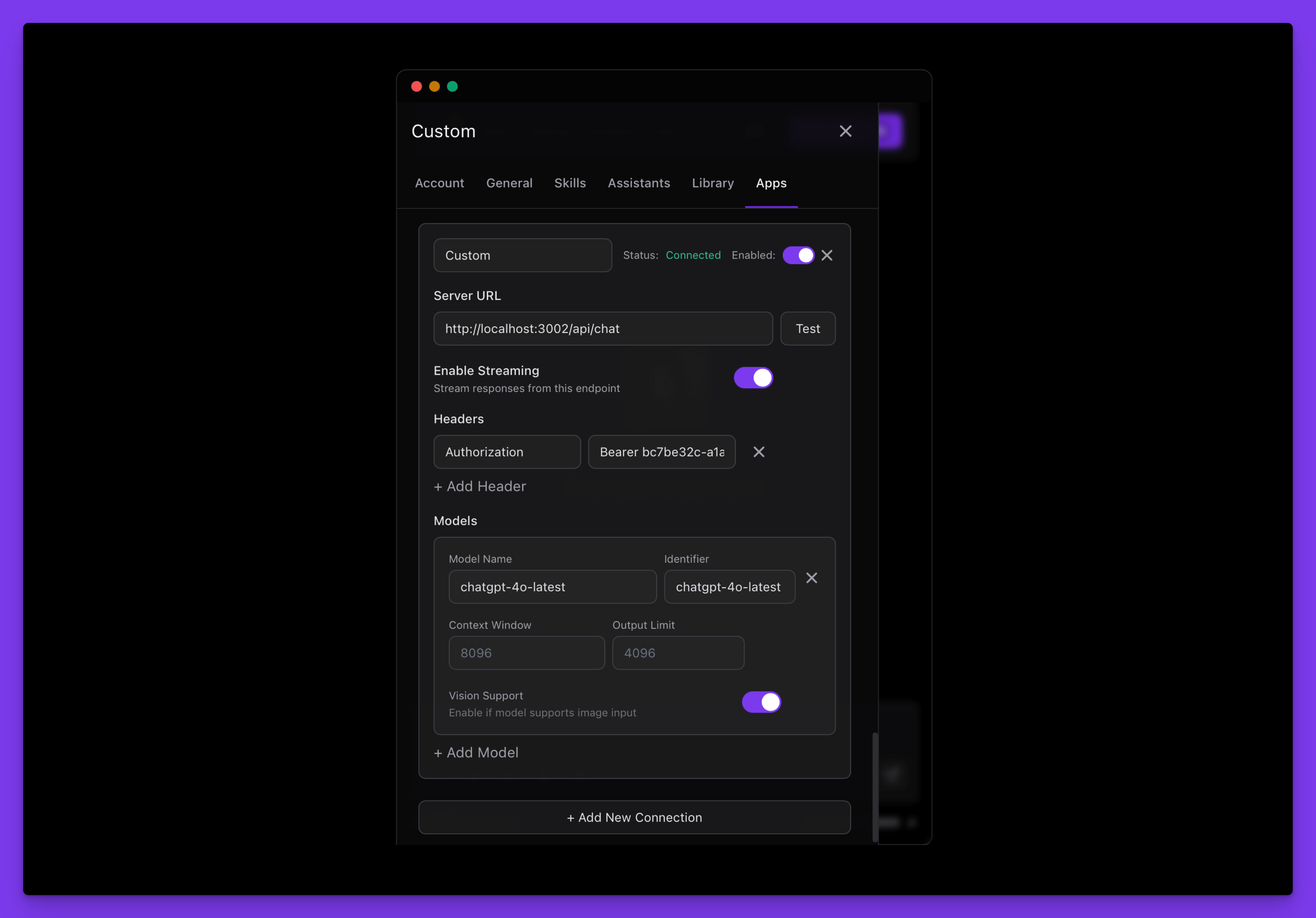 - Customize this back-end however you want. Just make sure that responses will match OpenAI Chat completion format.