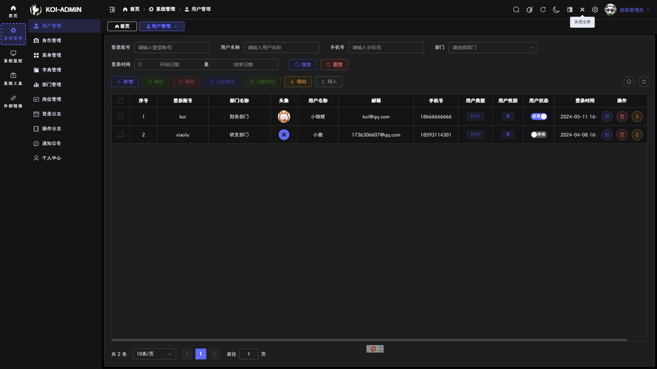 KOI-UI🌻 是一款开源企业级别的中后台管理平台模板,基于 Vue3、Vite、TypeScript、Pinia、Pinia持久化插件、Unocss 和 ElementPlus等前端最新技术栈。相较于其他比较流行的后台管理模板,更加简洁、快捷和容易理解,对萌新小白十分友好。此项目学习成本非常低含有相关代码注释以及大量的案例,非常适合企业级项目、中小型项目、个人项目以及毕业设计。后续将用户、角色、菜单、字典管理和通用管理平台页面依次编写,做到直接对接后端接口即可,使之快速开发。常见的组件有小伙伴提供可提issus会依次封装进去展示。