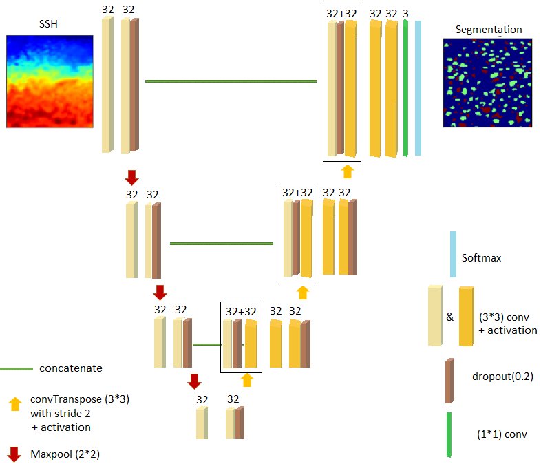 - Eddynet is easily modulable and can be used for further studies such as adding new information (e.g. Sea Surface Temperature), or training with another ground truth.