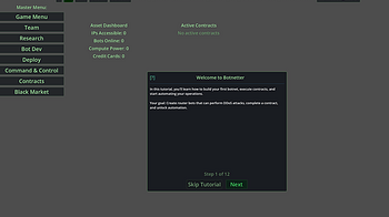 Botnetter Dev Update - Tutorial & UI Improvements What's New Interactive Tutorial System New players can now learn the ropes with a guided 11-step tutorial that...
