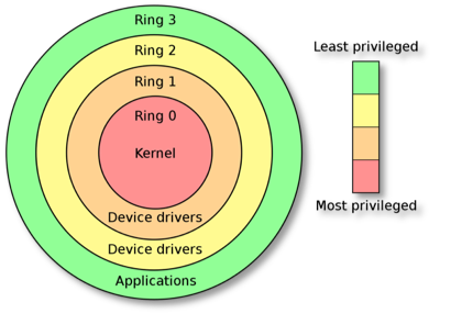 This all changed with newer processors and Operating Systems supporting the so-called protected mode. This mode introduced many safeguards and could protect the system from crashes by isolating running programs from each other using virtual memory and privilege levels or rings. On a Windows system two of these rings are actually used. Application are running in user-mode, which is the equivalent of ring 3 and critical system components like the kernel and device drivers are running in kernel-mode which corresponds to ring 0.